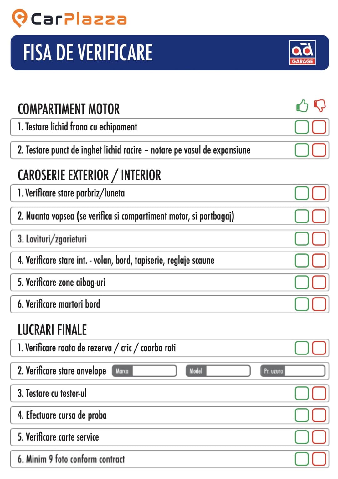 Fisa de verificare autovehicul - Model